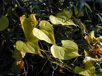 ヤマノイモの葉によく似ているが、芋は不味くて食えないらしい。オニドコロの葉交生しているが、