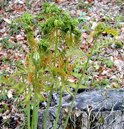 ゼンマイは他の山菜と比較してよく見かける。灰などを使ってあく抜きをし、手もみしながら乾かす。手間をかければ味が良くなると聞いた。