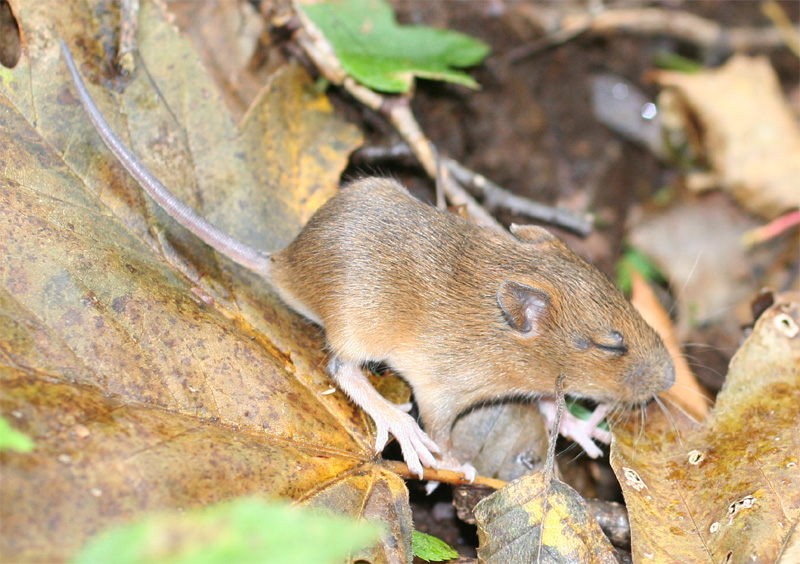 キノコ狩りで道無き山の斜面を歩いていると突然、カサカサと音をたて枯葉を掻き分け5,6匹の小動物が出没した。慌てて逃げていくが動きが鈍くバラバラの方向に散ってしまった。集団冬眠中であったのか? 秋にも出産する場合があるらしいので、巣離れ前の子供なのか? ゴメンナサイ。