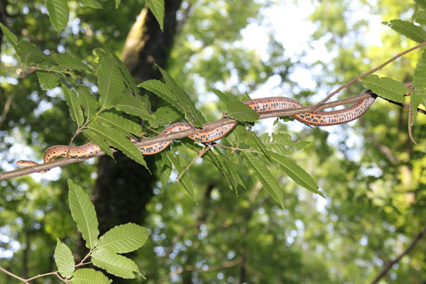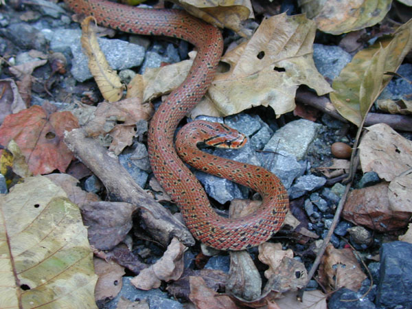 | 11月3日 狭山湖周辺にて。 5、60センチの小型のヘビ。 アオダイショウやヤマカガシやシマヘビなどは、よくこの辺で見るが、何年もこの付近に通っているにもかかわらず、、このヘビには初めてお会いした。 おそらく夜行性で、名前のとおり、地面に潜っているいることが多く、会う機会が少ないだけなのか・・・・。おとなしいヘビと聞いたが、口を大きく開いて攻撃してきた。 |