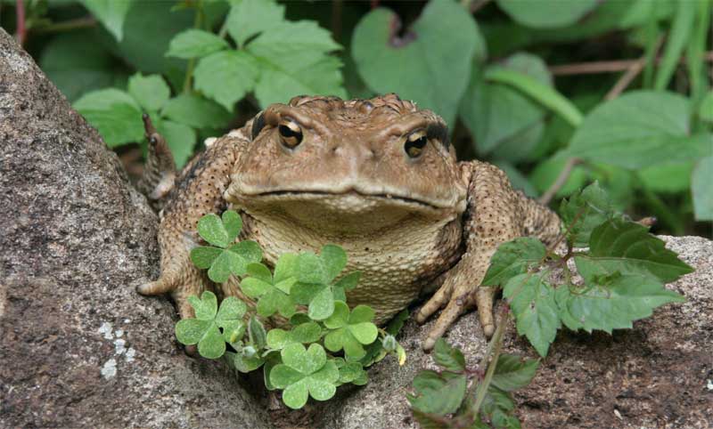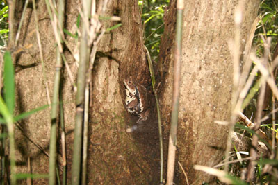| コナラの隙間で昼寝中。 ヒキガエルも木に登る? ↑ | |