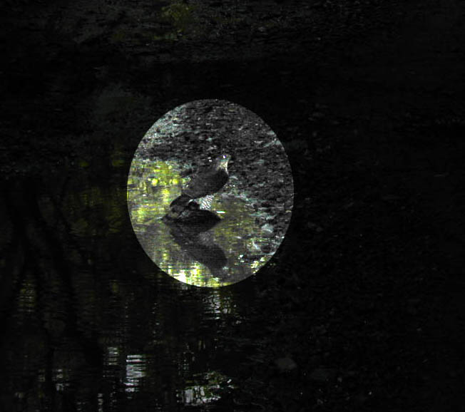 鷹が小鳥を捕まえて、水溜りの中に沈めて窒息死させているところ、この直前まで鳥の悲鳴が聞こえていた。