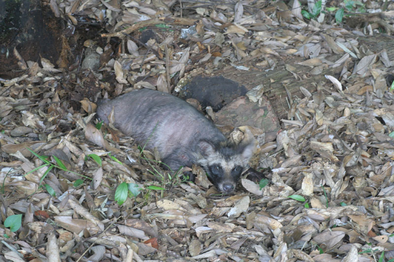 | この年狭山丘陵の数箇所でこのような病気のタヌキに出会った。 |