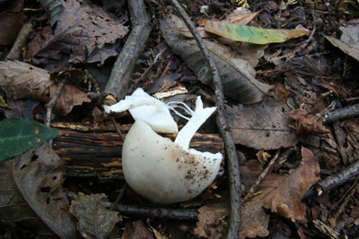 傘の径は2−3センチほどです。 小型ですが傘の模様から判断してブナシメジに思えます。