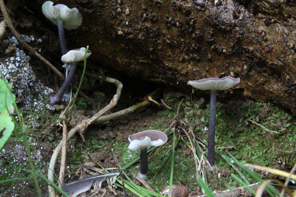 コナラの大木の根元が張り出した窪地内のコケ上に発生していた 傘の径3〜4センチ