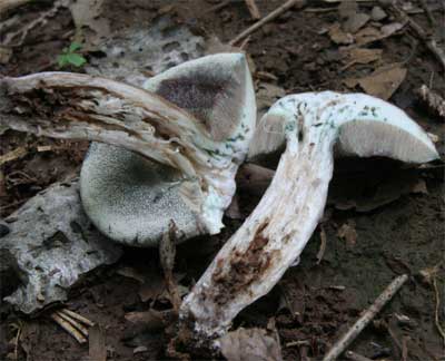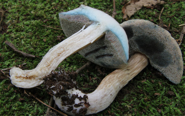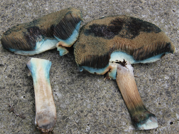 | 傘の肉の管孔側での青変が顕著 カクテルのブルーハワイ色 | |