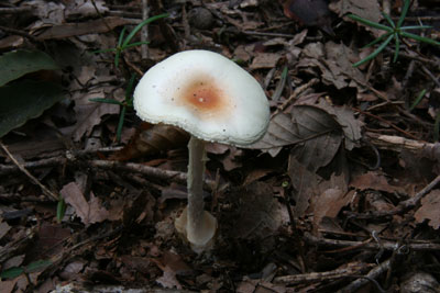 柄にはドクツルタケと同じ模様有り。 若い個体は中心部の赤みが弱い。
