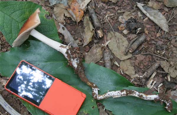 | アンモニア菌で動物の死体分解あと、糞尿の投棄あと、モグラの巣やクロスズメバチの地下巣あとから発生するそうです。 この場所も、少し休憩、ついでにシャー の場所でした。 |