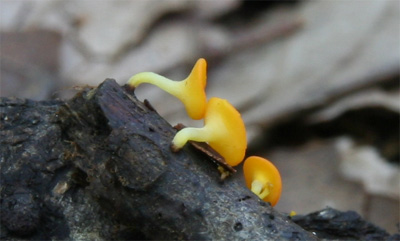 この日は台風通過でお湿りはあったが、暑く雨の少なかった夏の影響でキノコの発生はこの小さなキノコを除いて皆無であった。