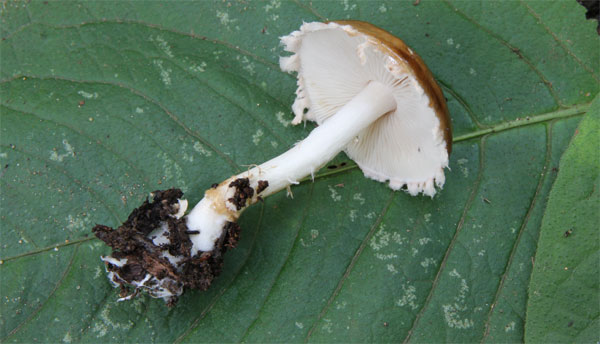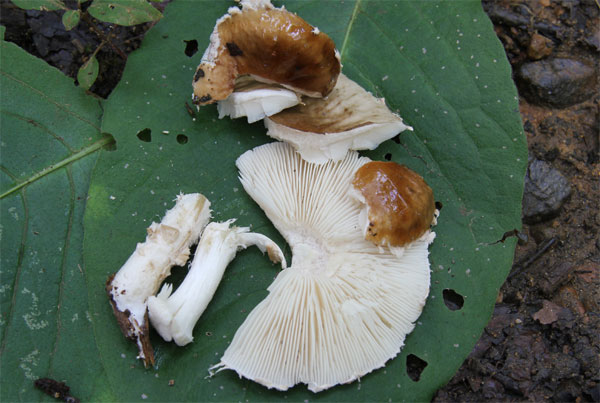 | 径は6〜7センチ ぬめり成分が剥げ落ち白くなってしまうのが早いため、側の茶色の個体に気づかなければ不明種となっていた。 |