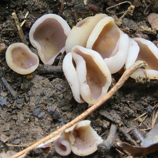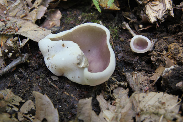 環境や成長過程で、ふじ色が退色した個体は?チャワンタケとなってしまう。
