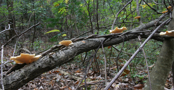 広葉樹に巻きついた木質の弦上に発生していた