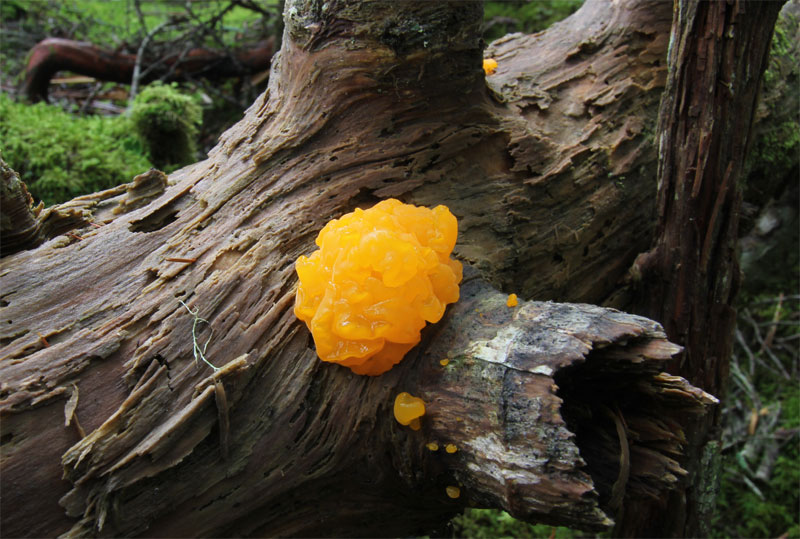 色鮮やかキクラゲの仲間 針葉樹の倒木に発生していた。