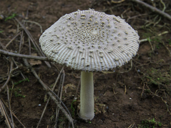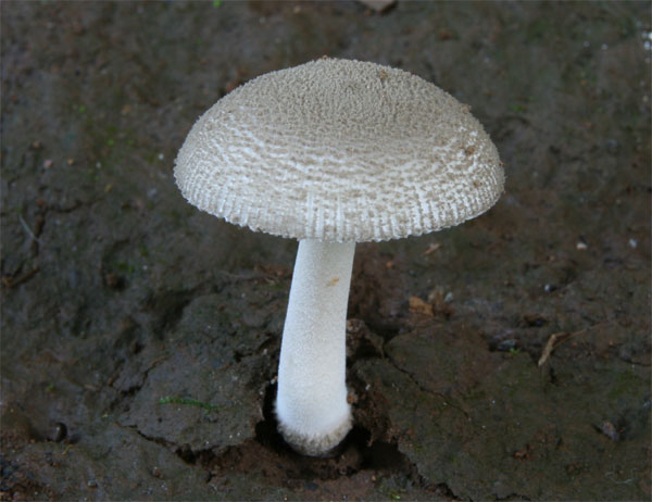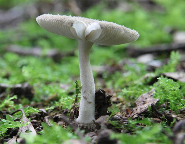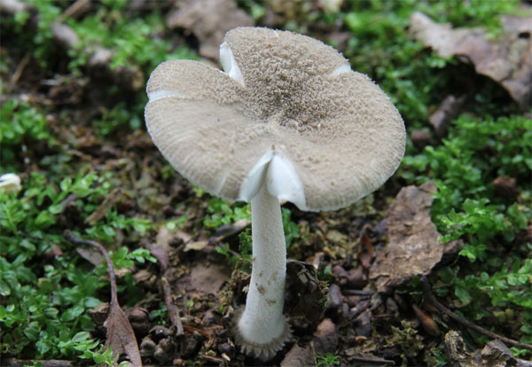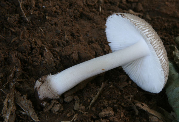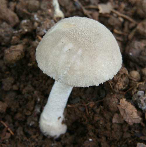 柄は白く基部はやや膨らみ同様の粉が付着している。