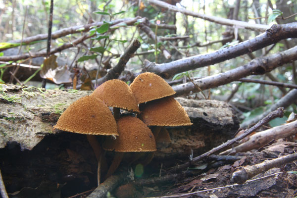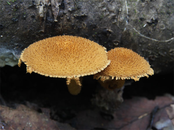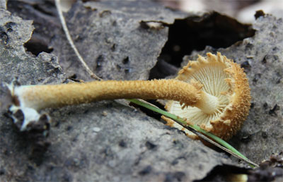 傘は針状の鱗片に覆われている。ヒメスギタケは針葉樹ではなく広葉樹に発生します。