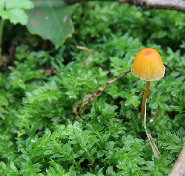 コケの間から発生する 傘の径は1センチ弱の小型菌