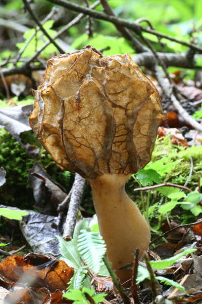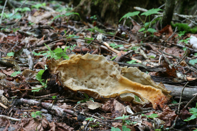 | 竜ヶ岳に登っている途中、風通しの良い所で見つけた。という訳でだいぶ乾燥しています。 アミガサタケにも種類があるのを知らなかった。 | |