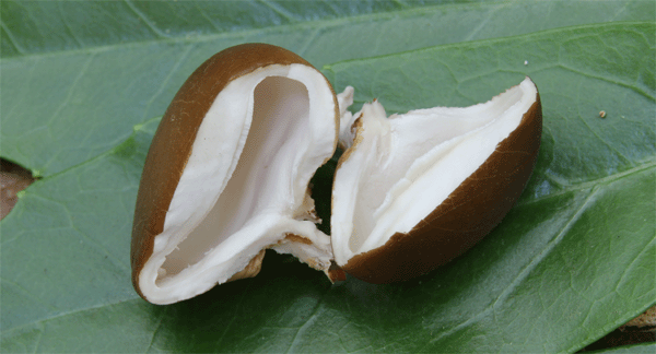| 若い個体を割いてみると、中に管孔らしきものが見える ↓ |