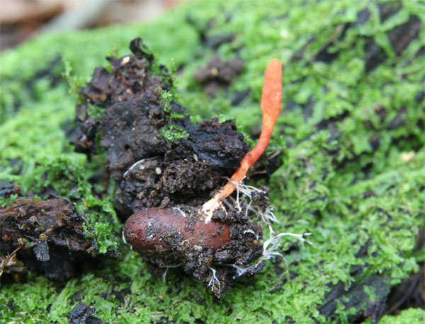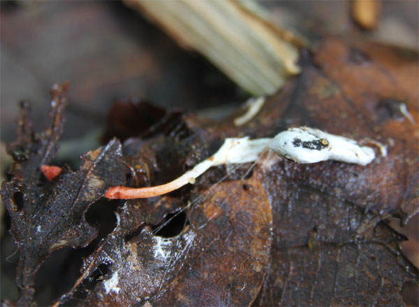 枯葉の隙間の一センチ程の蛾の幼虫から発生