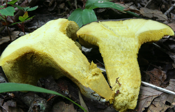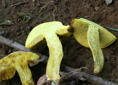 | 管孔はほぼ離生 孔口は黄色 | 肉も黄色 |