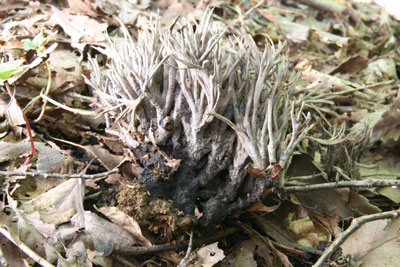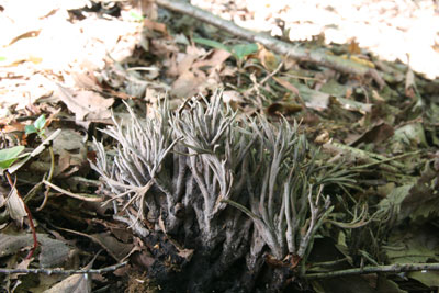 地上生のホウキタケ型のキノコ。