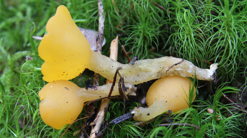 コケの上に顔を出すにはこの長さの柄が必要なのでしょう。
