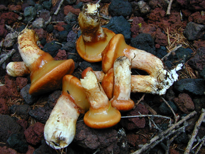 傘には強い粘性がある。カラマツ混じりの日当たりの良い場所を好む。林内の苔むした倒木や岩などに発生する。幼菌時、菅孔は強靭な膜に覆われています。味はグッドですが、図鑑によっては毒キノコ扱いです。