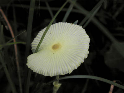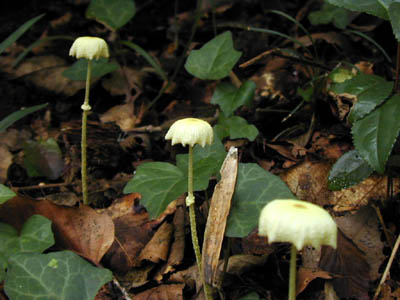 傘の直径が2センチほどのひょろ長く、弱々しいキノコ。