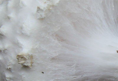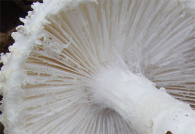 | ひだには綿屑状またはクモの巣状の繊維が付着 | |