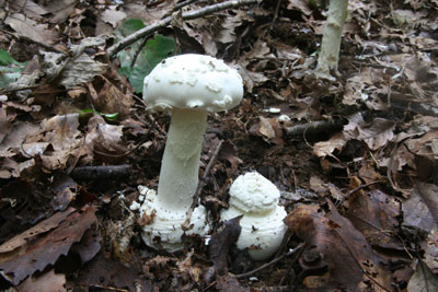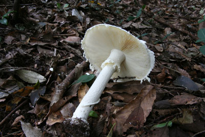 | 当地では夏から秋まで極普通に見ることができる。 鮮やかな白さが森の中では特に目立つ。 | |