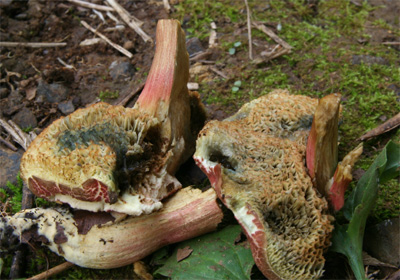 | 孔口は傷つけると青変 | 肉は白 アワタケ似の切断面 |