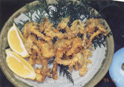 | フライは傘が開く前が美味い。 少し甘味がある。 | 大根卸しはナラタケの方がうまい。 |