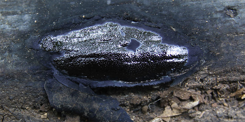 3センチ程の大きさ コールタールが材上で黒光りしている様である