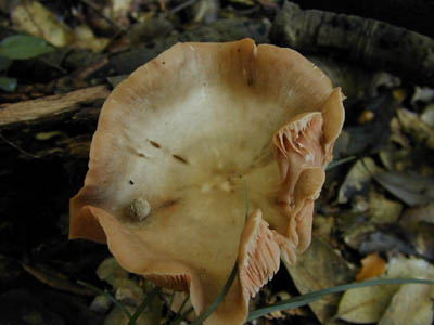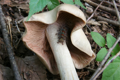 | 毒キノコです。 ウラベニホテイシメジなどの食菌と間違えて、中毒を起こすらしい。ひだが肉色のキノコは注意。 | |
