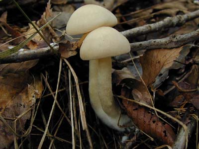 | 傘はほぼ白色で、柄が長い個体 | 湿時やや粘性有り |