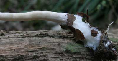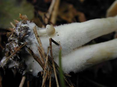 | 傘に少し吸水性を示す個体 | 幼菌の頃から柄の基部には細かい毛がある。 |