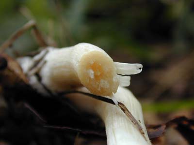 | 柄の基部に細かい毛があるのが目立つ | 柄は中空とは言えない |