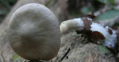 | ひだはほぼ白色の若い個体 | ひだは、2週間経ってもはっきりとした肉色とはならず、息の長いキノコ。 |