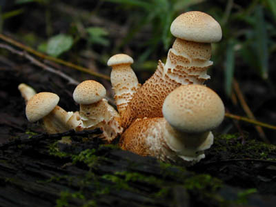 | 赤松の倒木上に発生する。4月から10月くらいまでと長い期間見つける事が出来る。キノコをはじめたての頃は、インスタントのマツタケのお吸い物に少し入れて食べたが、沢山食べると、時々中毒を起こすらしい。 | |
