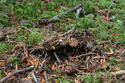 | シロ05にて | 一番のお気に入りの最初のシロにて、ぼくは↑の個体を見逃して、シロを離れようとした時に友人が↑の苔の盛り上がりに気づいた。二人とも見逃して、プロにでも発見されでもしたら、来年からのマツタケの収穫が激減するところでした (^_^;)。 苔を剥がすともう一本あった。 今年このしろにて10本目となった。 グレイト |