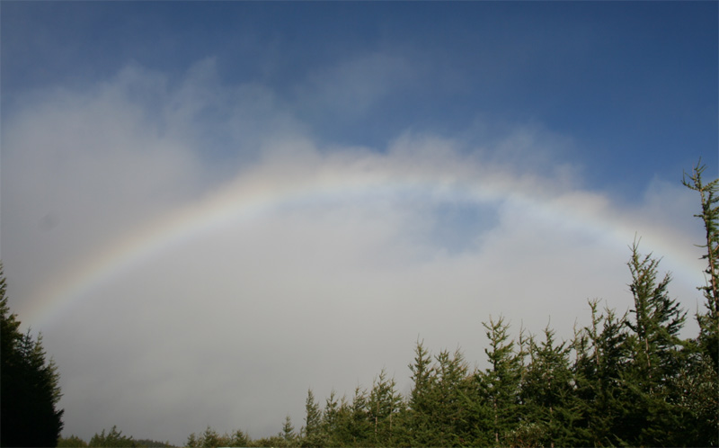 | この日の富士山では3合目から上では霧雨が降っていて虹が出たりしていてとても良い雰囲気ではあった。しかし森に入ってみると先々週よりは雑キノコは出ていたが、非常に少ない。 本日もマツタケの発生は確認できませんでしたが、ホンシメジ2株(あまり良い状態ではないが)やヤマドリタケ1本、ハナイグチ10本と夕食のおかずに色を添えることができました。東京でも朝晩は少し涼しく感じる日もでてきたが、まだまだ日中は暑く、少しお湿りが有ると真夏のキノコが元気に現れる状態です。台風9号の通過で沢山のシラビソが倒れ、落ち枝が堆積し環境がずいぶん変わってしまったシロもあった。台風などで大風が吹くと樹木の根が刺激され菌糸の生育を助けると聞いた事があるが、まだその様な喜ばしい状況ではないが今後に期待したい。 9月1日よりは少し改善した二回目の富士山でのきのこ狩りとなった。 | |