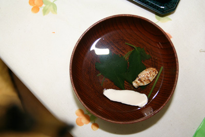 | 友人のようかん君が作ってくれた絶品料理です。↑ 鯛の切り身、マツタケのスライス、ホンジメジ、昆布、昆布だし汁、酒、塩を入れオーブンで15分。 タイトル “香りマツタケ味しめじ” 美味い | 昆布だしのお吸い物 ↑ |