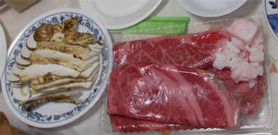 |  | 大きいものをすき焼きにしましたが、以前に食べた傘の開いたマツタケと比べると幼菌では少し固く香りも少し劣っているようだ。すき焼きは傘の開いたものに限ります。今回沢山採れたショウゲンジも入れてみた。食感だけのキノコと思っていたが、味もなかなかで見直した。 |