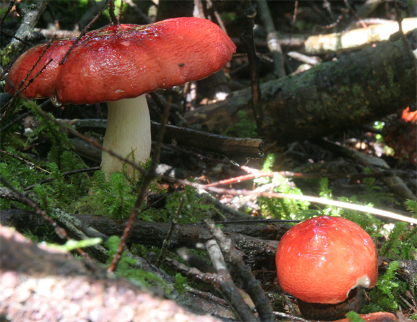 | この夏後半は、東京ではやたらと雷が多かった。森林の中へ足を入れてみると、赤 緑 黄 紫等のベニタケ科のキノコが豊富であり、富士山でも8月後半には、お湿りがあったであろうと想像できた。 豊作とは言えないが、ショウゲンジ、クロカワ、ホンシメジ、ツガタケ 、ヌメリササタケ等の食菌も十分に採れた。 マツタケの発生状況は良く有りません。まだまだこれからに期待です。 |