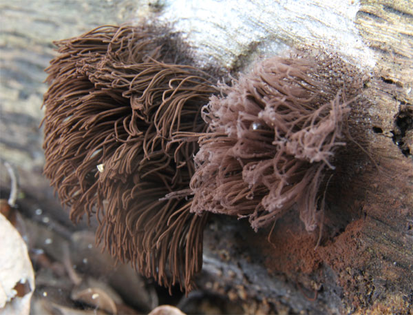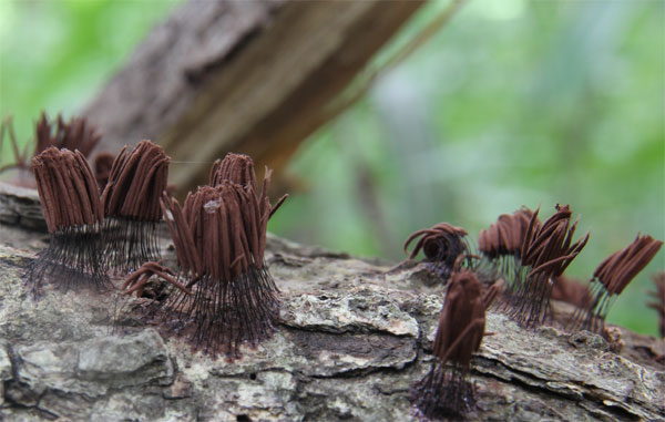 森の中で風に吹かれて胞子を飛ばしている姿にしばし出会うので、変形菌は子実体を形成し、胞子により繁殖するので、きのこの仲間と思っていたのだが、変形体が移動しながら微生物を摂取するといる動物的な活動もするので動物などに近いとも言われているそうですが・・