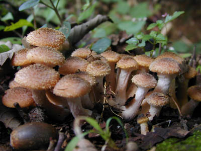 | 10月6日 狭山丘陵 ↑ワタゲナラタケ? | 狭山丘陵 10月28日 ↑ 白っぽいタイプ |