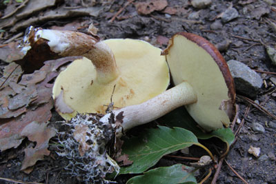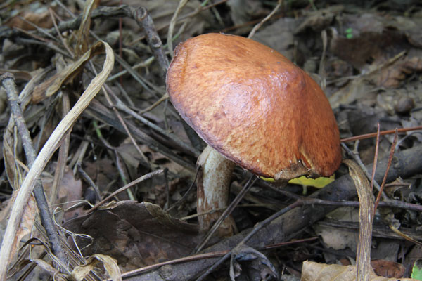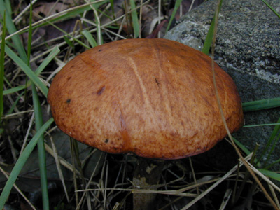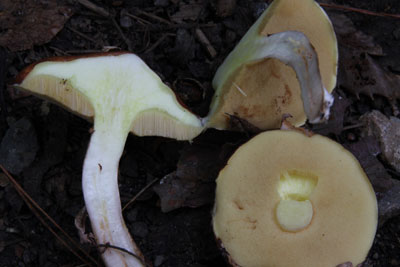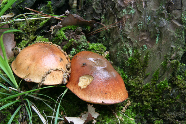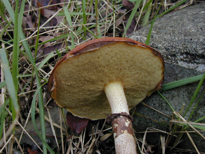 通常膜質のつばを持つが、この個体は皮膜が傘側に付着している