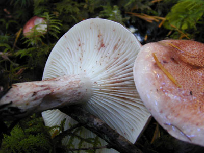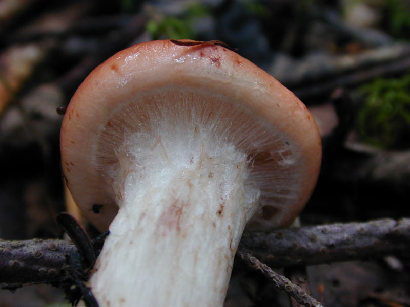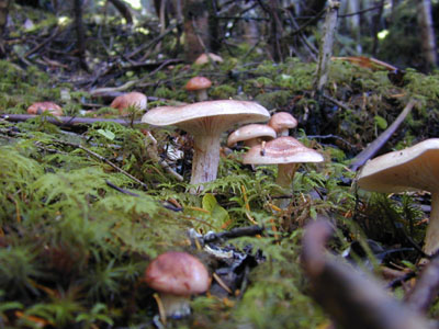 マツタケのシロのそばで見つけた、キノコ販売店のおじさんに名前を教えてもらった。 サクラシメジより美味しいらしい。 ぼくの持っている図鑑には、このキノコは、載っていない。 おじさんを信じて、来年は食べてみよう。 |