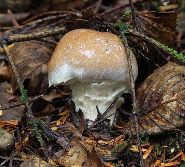 | 富士山に通うようになり毎シーズン出会ってはいたのだが、なかなか良い被写体の個体に出会えなかったので、自分の撮り貯めた過去の写真を見てみても、図鑑に載っているような典型的なオオツガタケは撮っていなかった。 また、富士山ではよく似たフウセンタケ科のキノコもあり富士山に通い始めの頃の写真では同定できていなかった。 今年、初めて焼いて食べてみた、味も歯ごたえも良い優秀な食菌であると思う。 しかし、なかなか群生には出会えていないの食べる機会は少ない。この写真の数メートル上には傘の開いたマツタケがある場所にて。 |