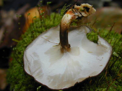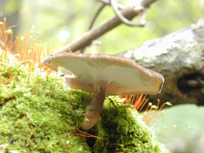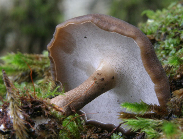苔むした倒木に発生していた。採取しようとしたが、強力に材にくっ付いていて、なかなか離せなかった。肉質も革のようにたいへん強く、とても食欲がわかない。出汁としては使えるようだ。